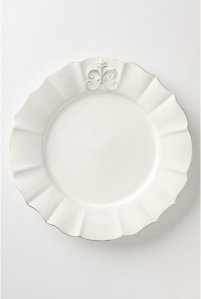 Bit by bit, I would like to add some dinnerware. Given my love for all things fleur-de-lys, I would LOVE these from Anthropologie, but the price is way too scary.