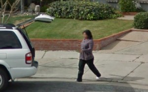 I said, ” . . . the Google Maps street level cam-car drove into our court just when I was carrying plants for my garden. In nasty old sweatpants, a ratty old cardigan that makes me look 8 months preggo and uber-stylish white socks.”