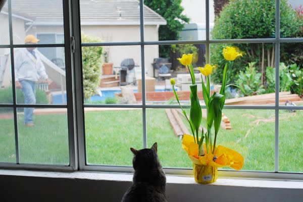 Yes, that’s my youngest helping out, and you can see the difference between the yellow walls and the new color. Not a huge difference, just a subtle de-yellow-ing that left our walls looking brighter.