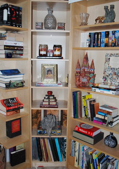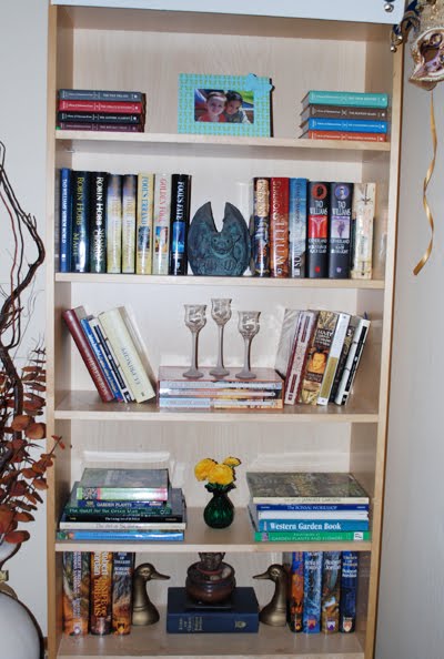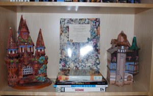 It is layer upon layer of holiday items surrounding a huge hurricane vase we used at our wedding.