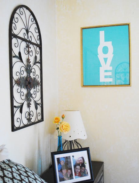 The nightstands are IKEA Expedit pieces we brought from California, and the lamps and shades are from WalMart.