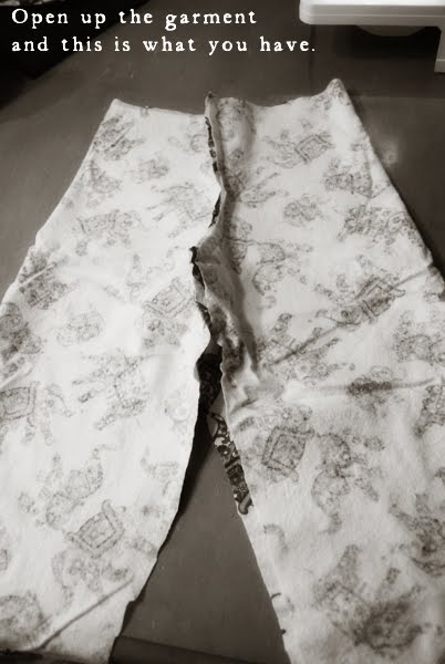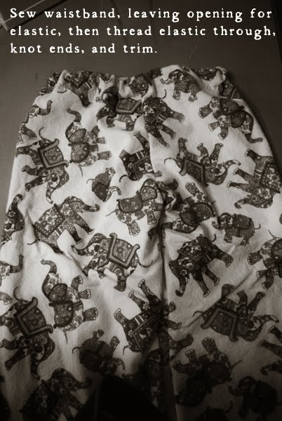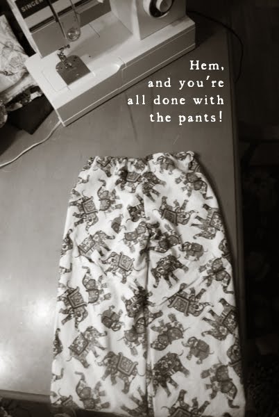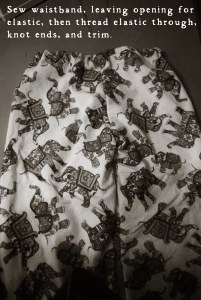 Out came another elephant fabric blanket for the transformation. Here are the steps I have followed – mom taught me how to get a elastic-waist pants pattern from a regular pair of pants.