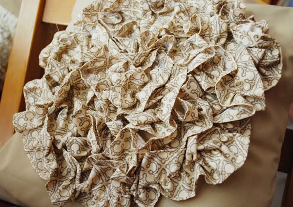 I made some pillow covers a few days ago, here are some more with the same fabrics. I decided to add some texture and make some ruffles and rosettes.